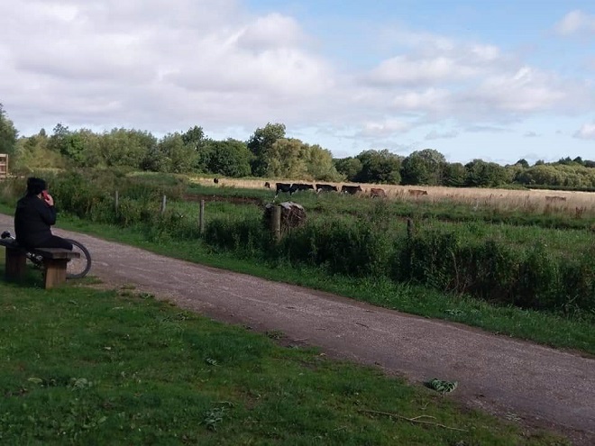अगाडि पट्टिको घोडेटोको छेउँमा एउटा बेञ्चि देखियो । यहाँ निरको यो बेञ्चिले सानो छँदा मोटर नपुगेका ती नेपालका पहाडमा हिँड्दा भेटिने ढाक्रेहरूको ताँती, उनिहरूले भारी विसाउने यस्तै बेञ्चि र घोंड सवार महाजनहरूको सम्झनाले सताउँछ । ती खस्रा बेञ्ची भन्दा यो बेञ्चको फिनिसिङ अलि सर्लक्कको छ, बान्की मिलेको देखिन्छ । नत्र आकार प्रकार, उचाइ पछाडि पट्टि ढाड अडेस लाग्ने फलेक सवै ठ्याक्कै उस्तै छन् । सायद आधुनिक प्रविधिले सजिसजाउ सहितका मोटरबाटो नहुँदासम्म यहाँका गोरेको पनि हाम्रै जस्ता भरिया र बाटोमा भारी विसाउने चलन थियो होला । त्यही संझाउन पुरानै ढाँचा कायम गर्ने यो झलक राखेका होलान भन्ने अनुमान गर्न पुग्छु, म । त्यो बेञ्ची भन्दा अलि अघि बायाँ पट्टिको ओरालो झर्न काठ जोडेर खुड्किला पारेर बनाइएको सिंढिमा देखिएको सुकेको गोबरको थुप्रोले तलको खोला पारि चर्दै गरेका गाइको बथानलाइ यतैबाट ल्याउने–लैजाने गर्दाहुन भन्ने अनुमान गर्न गाहरो भएन । तर, मैले ती गाइका बथानलाइ त्यही काँडेतारले बारेको खोलापारिको घासे मैदानमा कहिले चर्दै गरेको त कहिले पाहुर लाउँदै गरेको देखेको छु । यो सिंढिमा हिँडेको भने देखेको छैन । ती गाइ र त्यो चौर यहाँ निर बाट भन्दा पारि पट्टिको ताल तिरबाट राम्ररि देखिन्छ । आखिर अगाडि बढ्दै गएर पुरानो भैसकेको पुलबाट त्यो खोला तरेर तालनिर पुगिहाल्छु म, अनि उतै बाट सवै देखिन्छ, भन्ने मनमा कुरा खेलाउँदै म अगाडि बढ्छु । घोडेटो बाटो अलि बायाँ घुमेर ओरालो लाग्दै गर्दा एउटा एघार–बाह्र वर्षकी बच्ची र सायद उनकी आमा होलिन, उकालोमा साइकलको प्याडल मार्न नसके पछि साइकल डोर्याउँदै उकालो चढ्दै गरेका भेटिए । उनीहरूसंग पनि 'गुड मर्निङ, हाउ आर यू' भन्ने औपचारिक सम्बाद दोहोरियो । सौहार्दता उस्तै थियो ।