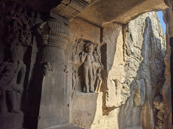 आस्थाको प्रभाव समाजमा फेरिंदै जाने क्रमलार्इ नै ती गुफाहरूले पनि पुष्टि गरिरहेका रहेछन् । एलोराका सवैभन्दा पुराना गुफामा बौध्द आस्थाका संरचना देखिन्छन् । त्यसपछिका संरचनामा हिन्दू आस्थाको प्रभाव भेटियो । पछिल्ला संरचना भनेर मानिएका गुफामा गणेशलार्इ प्राथमिकताका रूपमा पुजा गर्ने हिन्दू आस्था प्रतिबिम्बित रहेछन् । टुप्पाको कुण्डबाट पानी छाँगा मुनि प्राकृतिक रूपमा बग्ने बाटो छँदैछ ।